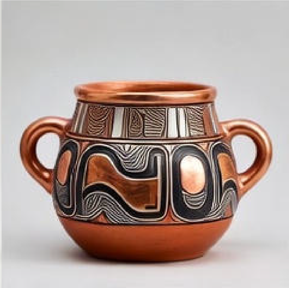 Rehue de greda bruñida – Pomaire + reinterpretación mapuche